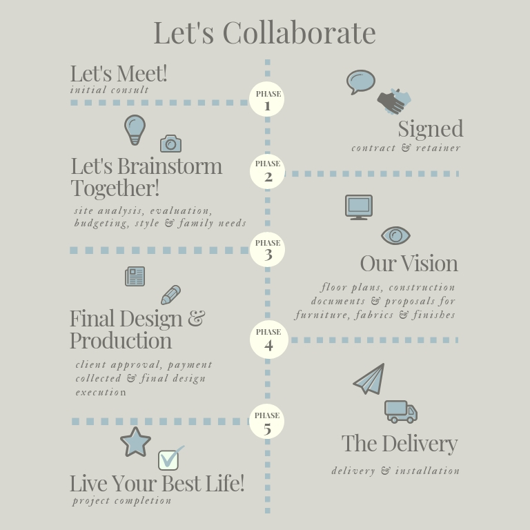 As a full service interior design firm, we focus on every detail of your high-end project from start to finish, covering every aspect of your job including consulting with architects and builders to designing all aspects of the space with tailor-made finishes to walking clients through the whole process with ease!